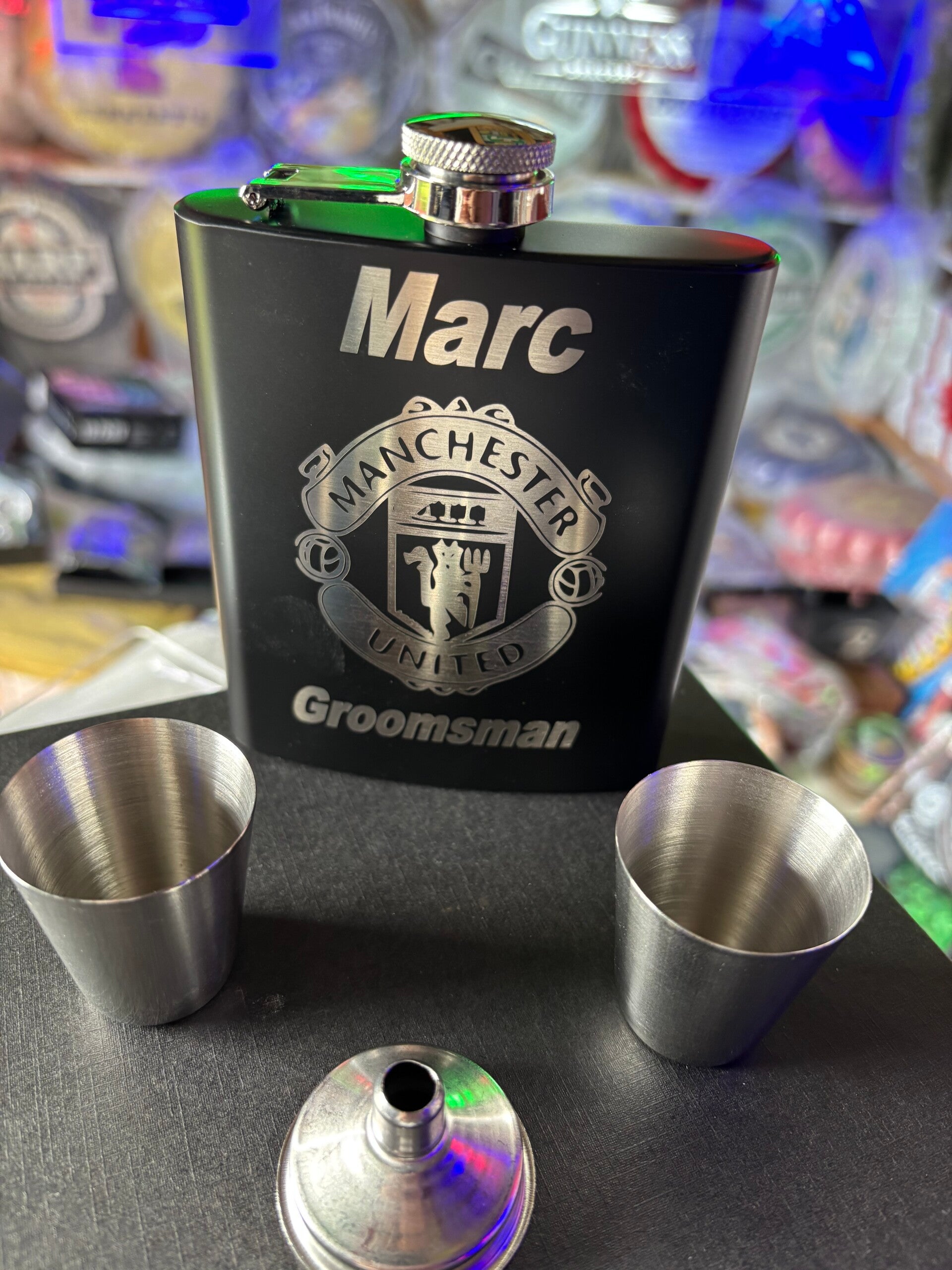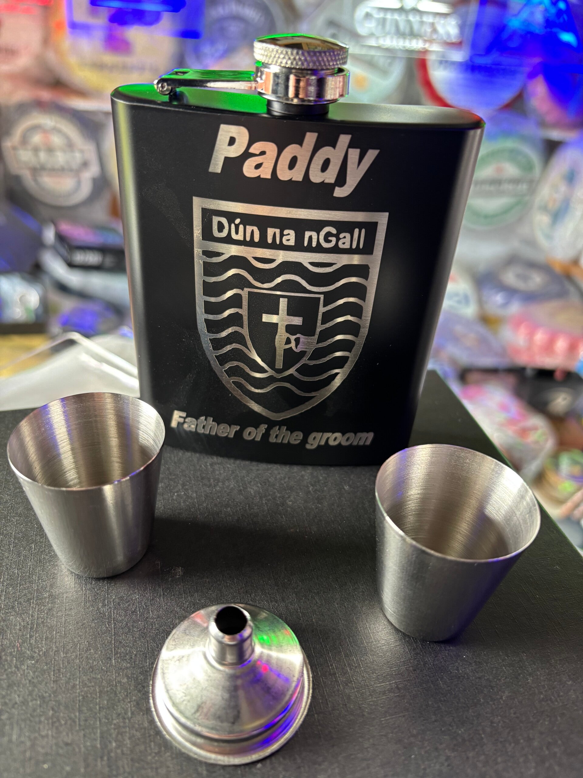 comes with two shot cups/funnel and lovely gift box
